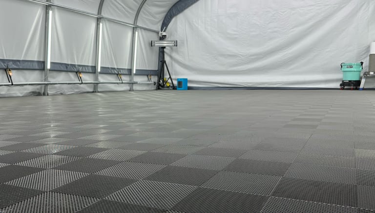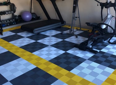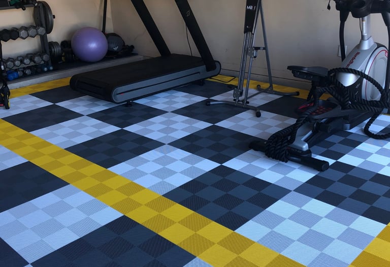 Enhance your garage's durability and aesthetics with our high-quality polymer floor tiles.